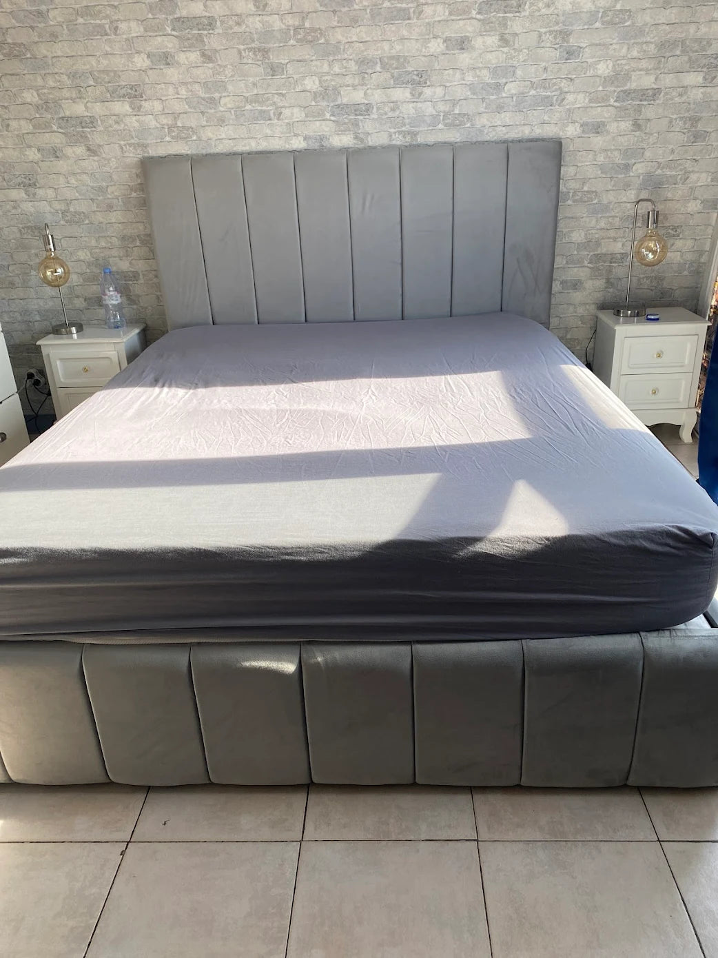 Meublez votre espace nuit avec le cadre de lit deux places Polo. Avec un style moderne et plein de charme, le cadre de lit en velours gris décore votre intérieur avec une allure prestigieuse et royale. Doté d’une structure métallique robuste, votre cadre de lit est conçu pour vous servir durant de nombreuses années sans problème. Votre mobilier est disponible en trois dimensions 140x190 160x200 et 180x200. Profitez de suffisamment d’espace pour passer une nuit douce et confortable. Offrez-vous ce magnifique cadre de lit avec ou sans sommier, suivant vos préférences.