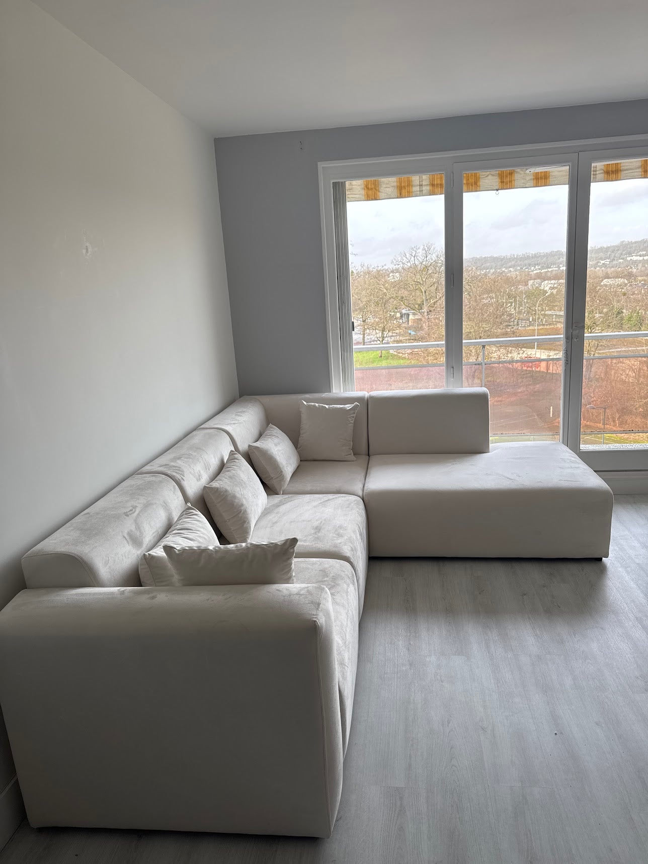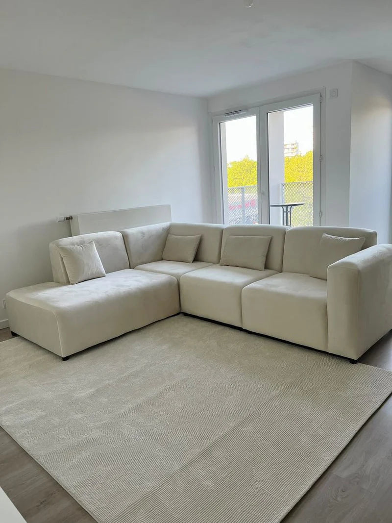 Le canapé d'angle Coco est parfait pour ajouter un côté chaleureux et conviviale à votre pièce de vie grâce à son revêtement en velours blanc cassé. Un modèle design apportant une touche élégante et classique à votre salon