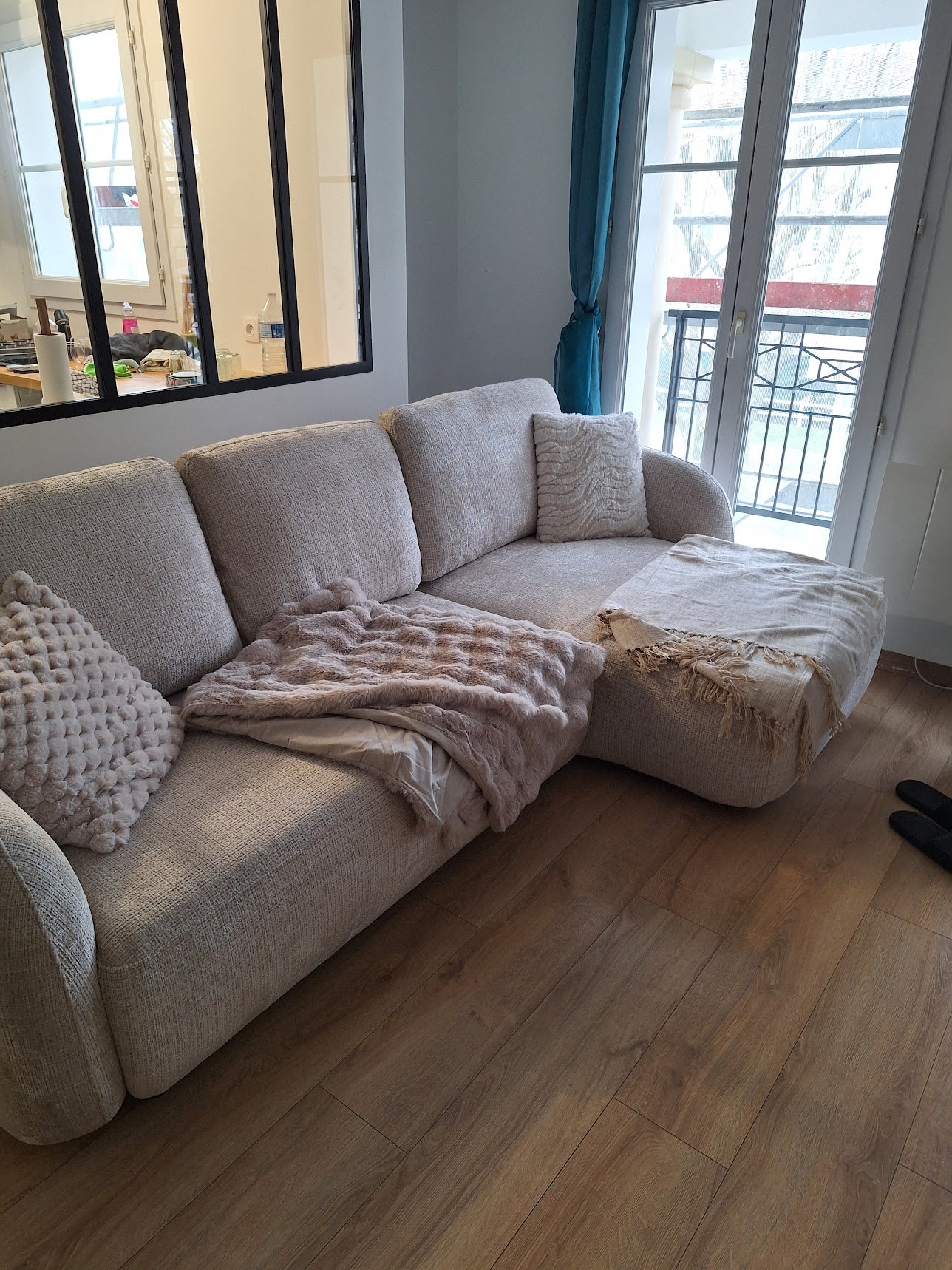 Le canapé d’angle Porto en tissu Marbella blanc cassé séduit par son style moderne et sa praticité. Grâce à sa fonction convertible, il se transforme rapidement en couchage d’appoint confortable, idéal pour accueillir famille ou amis. Sa forme d’angle offre une assise généreuse et conviviale, parfaite pour profiter de vos moments de détente.