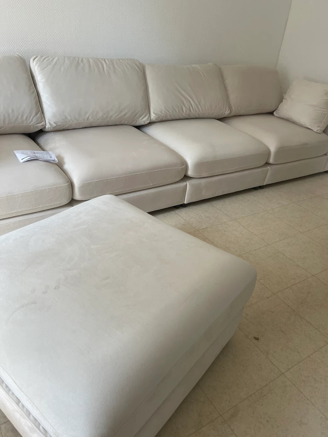 Canapé Julia Modulable Velours Blanc cassé 4+1 Pouf