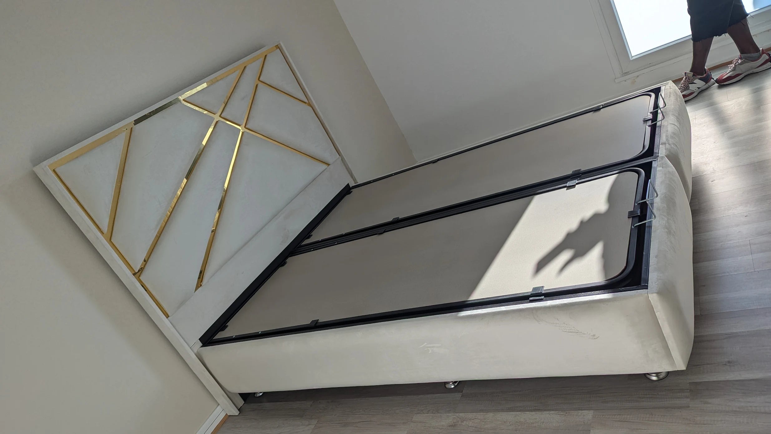 Lit Coffre PARMA BEIGE CLAIR - Velours
