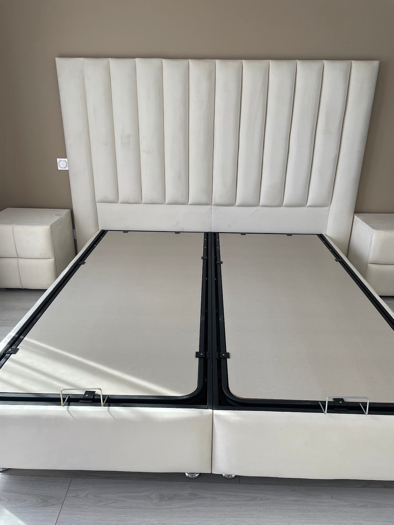 Lit Coffre ATHENA BLANC CASSE - VELOURS