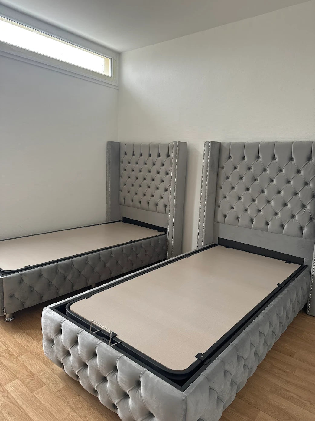 Lit Coffre Enfant CLOUTE GRIS - Velours capitonné